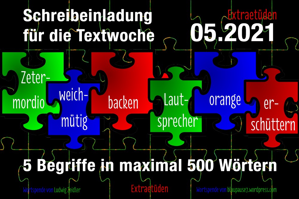 Hinweis: Dieser Text hat die Form einer Extraetüde, deren „Spielregeln“ bei Christiane (Schreibeinladung für die Textwoche 05.21 | Extraetüden | Irgendwas ist immer (wordpress.com)) zu finden sind.